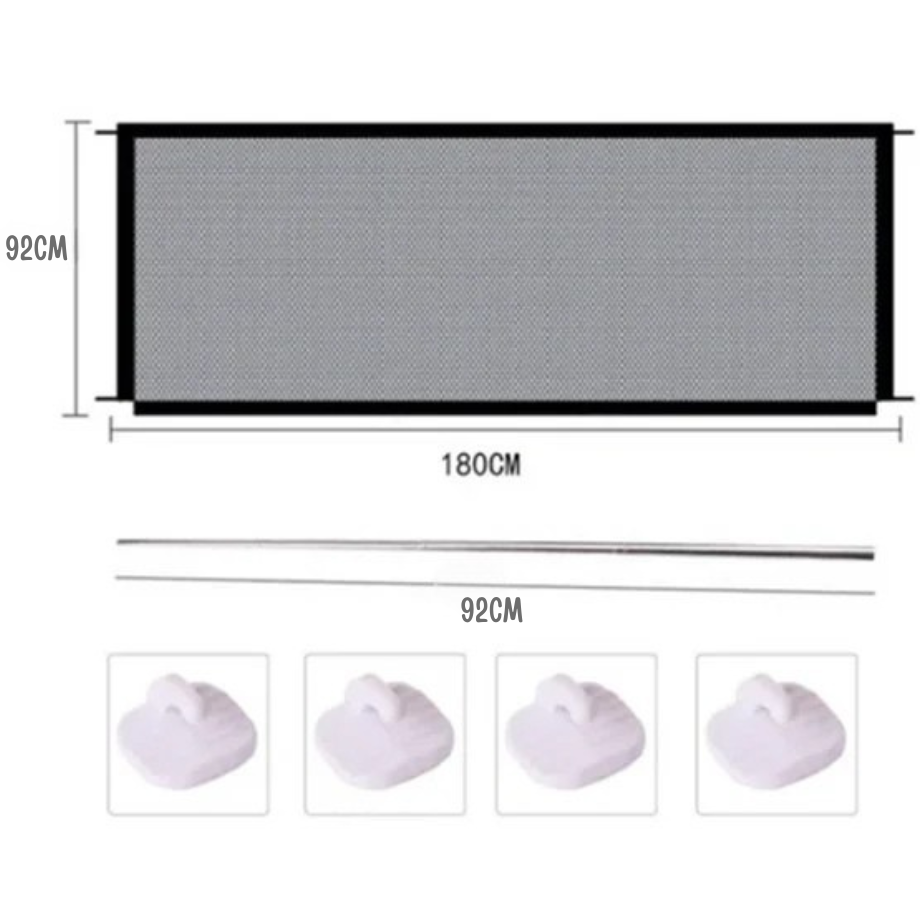👀 Visibilidad y supervisión: Su tejido permite ver a través de la barrera, facilitando la supervisión constante de tus hijos y mascotas. 👁👶🐾
