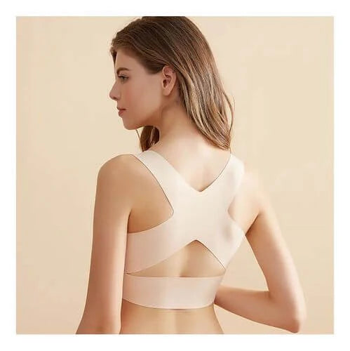 Las correas entrecruzadas tiran suavemente de tus hombros hacia atrás, ayudándote a mantener una postura erguida y segura.